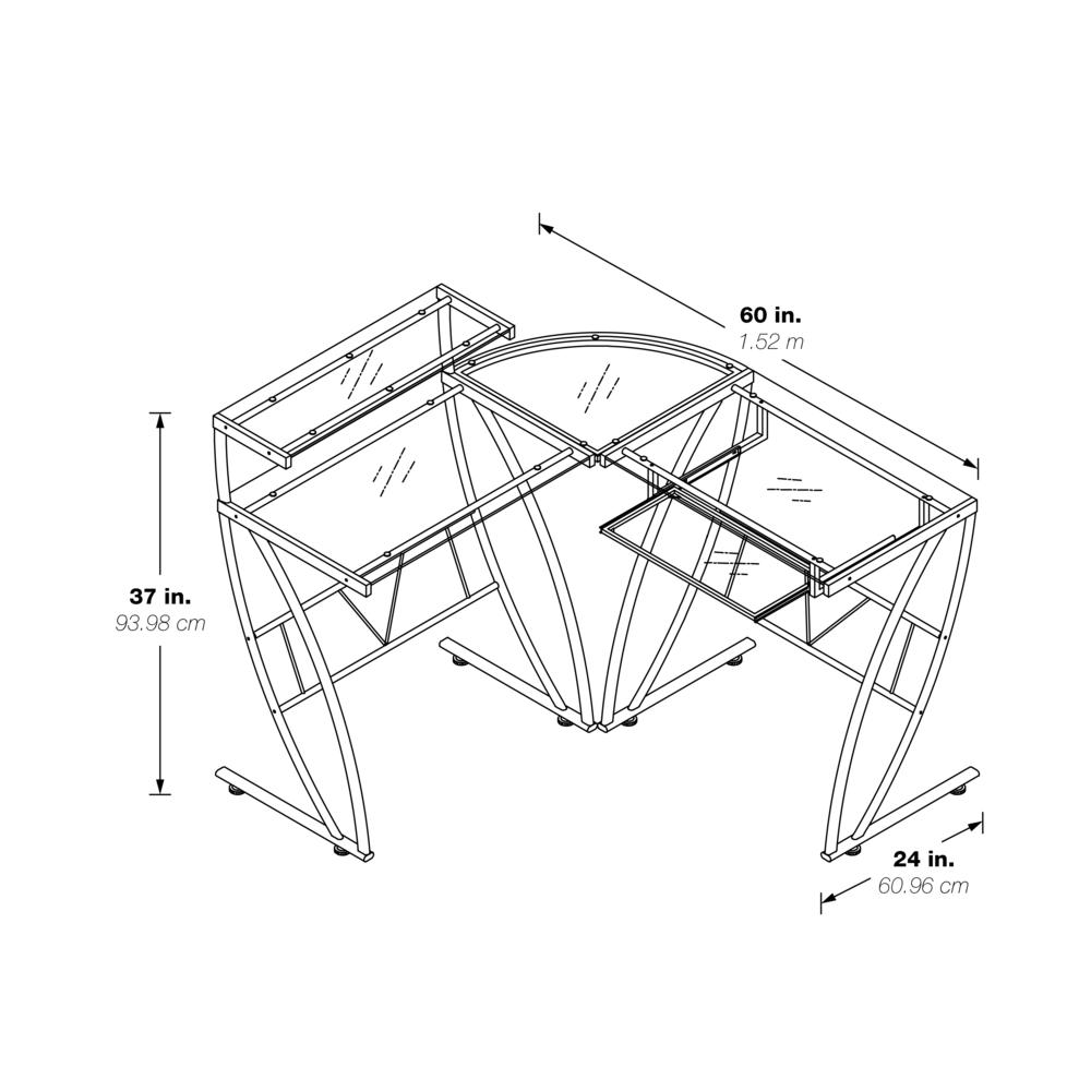 Create a contemporary home office that also offers a great editing and gaming station option with the Constellation L shaped Desk. Tempered, safety glass surfaces and attractive metal frame provides an airy, open style that will compliment and room. Upper glass shelf can position dual monitors at the optimum viewing level and keeps the main desktop area clear for multi-functional tasks or a third monitor. L shape with corner return and a glass pull-out keyboard shelf provides even more useable surface area. Enjoy years of continued use thanks to our durable and sturdy steel frame. Simple, easy-to-follow assembly instructions will get you’re gaming station or home office up and running in a breeze!